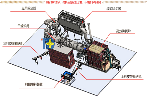 ②打散區:大塊的濕煤泥在此區經打散裝置打碎成小塊甚至粉末狀,大大增加煤泥和熱風的熱交換面積;