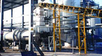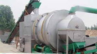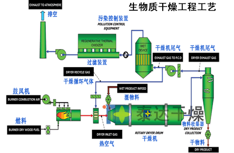 輕質物料干燥工程核心系統:包含進料裝置、旋轉器、托輥、進料裝置封頭、進料螺旋、特殊揚料板等。旋轉器位于主動滾輪上,主動滾輪靠電機及減速傳動帶動旋轉器低速轉動,熱源與旋轉器之間沒有進料口,旋轉筒內設有特殊翻炒葉片。當旋轉器轉動通過筒內的楊板將物料楊起形成一種料幕,旋轉器的進料端熱風正好與物料結合,這樣讓物料充分與熱風接觸,達到完美烘干。