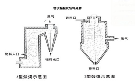 煅燒爐內熱空氣溫度500-1600℃,煅燒物料粒度<60目。